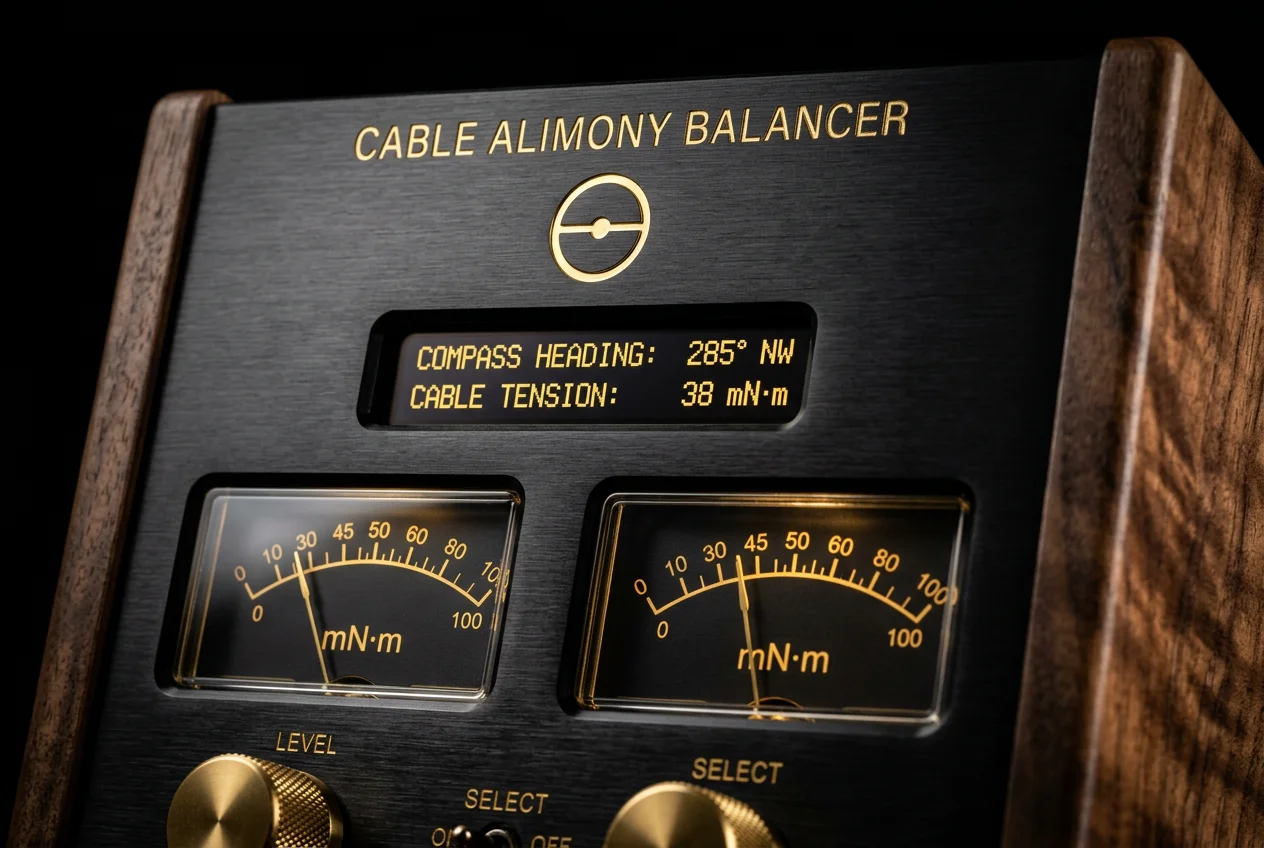 The Cable Alimony Balancer is a precision desktop instrument that detects and corrects equatorial alimonies in real-time. Dual independent correction circuits continuously monitor the left and right channels, measuring alimony to a resolution of 0.0001 nanotesla and applying an equal and opposite magnetic bias offset to restore perfect hemispheric neutrality. The continuously variable 0-360 degree offset control allows for precise compensation regardless of your geographic latitude or the cable’s country of origin.