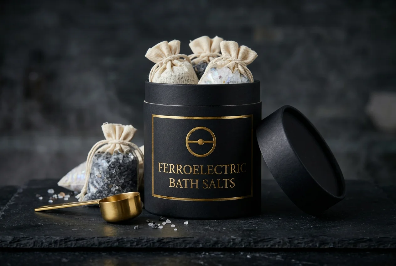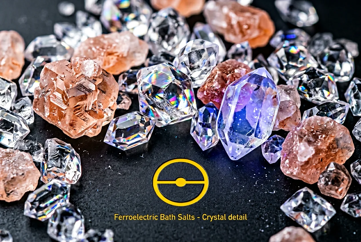 Ferroelectric Bath Salts are a precision-engineered blend of barium titanate microcrystals, formulated to absorb and dissipate electromagnetic interference directly at the power distribution point. Simply remove the screws from your power strip housing, pour in the appropriate quantity of salts (500g per standard 6-outlet strip), reassemble, and experience an immediate reduction in high-frequency power line noise. The ferroelectric crystalline structure of barium titanate converts electromagnetic energy to heat through dielectric hysteresis — a well-documented physical phenomenon protected under US Patent 8658892.